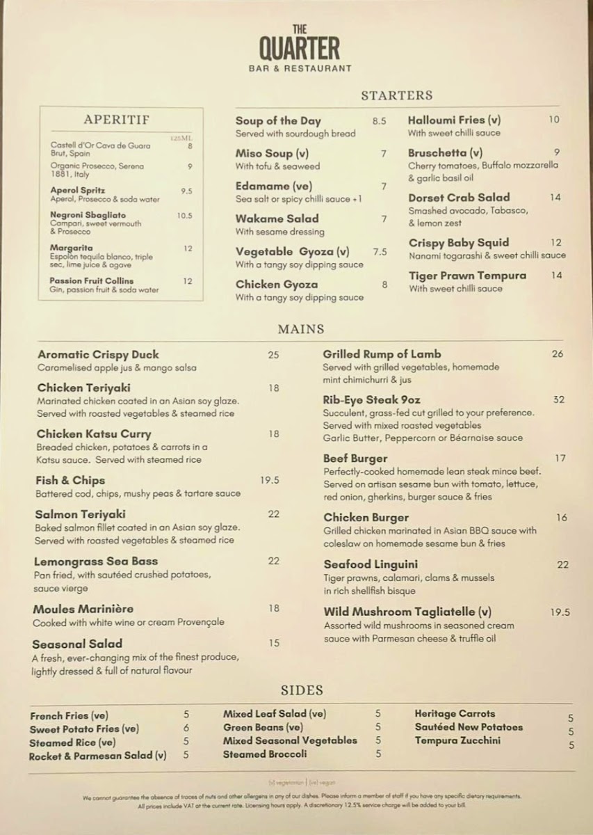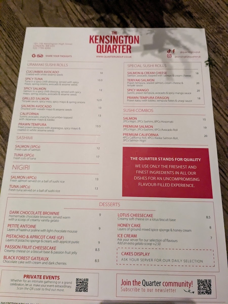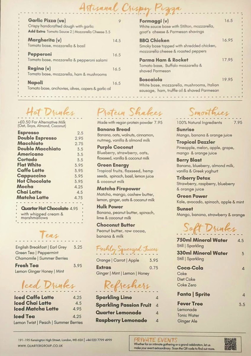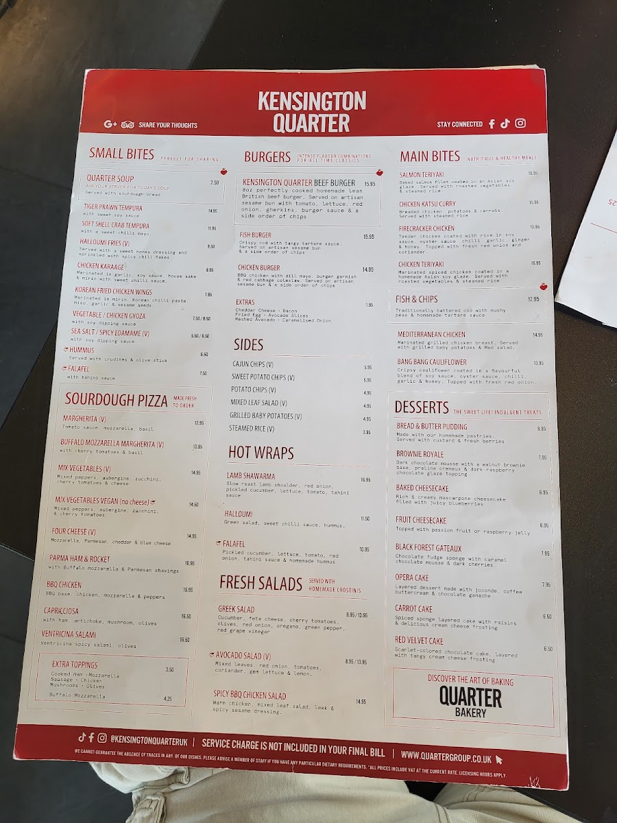 In short, the Kensington Quarter Menu offers a curated, modern British-European fusion experience with ample variety and attentive service. Ideal for locals and tourists alike, it's a worthy stop in West London’s culinary scene.