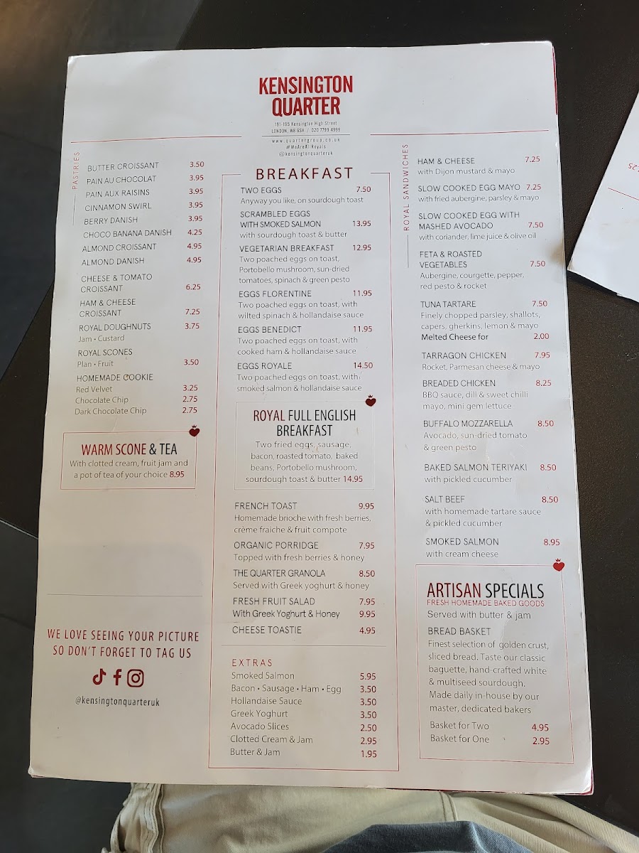 For those seeking a delightful dining experience in the heart of West London, the Kensington Quarter Menu delivers a refined yet approachable offering that stands out amidst the bustling Kensington High Street. As a frequent visitor of upscale cafés and bistros across London, I found this venue to combine atmosphere, flavour, and value in a balanced, thoughtfully executed manner.